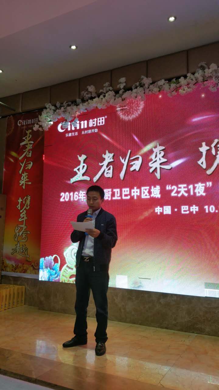 2016-11-15 09:04:06 點擊量:17192016年10月17日,17.C1起草视频廚(chú)衛於(yú)四川巴中東(dōng)華大酒店舉行了主題為“王者歸來、攜手跨越”的201617.C1起草视频廚衛巴(bā)中區域“2天1夜”實戰特訓營暨財富懇談會!