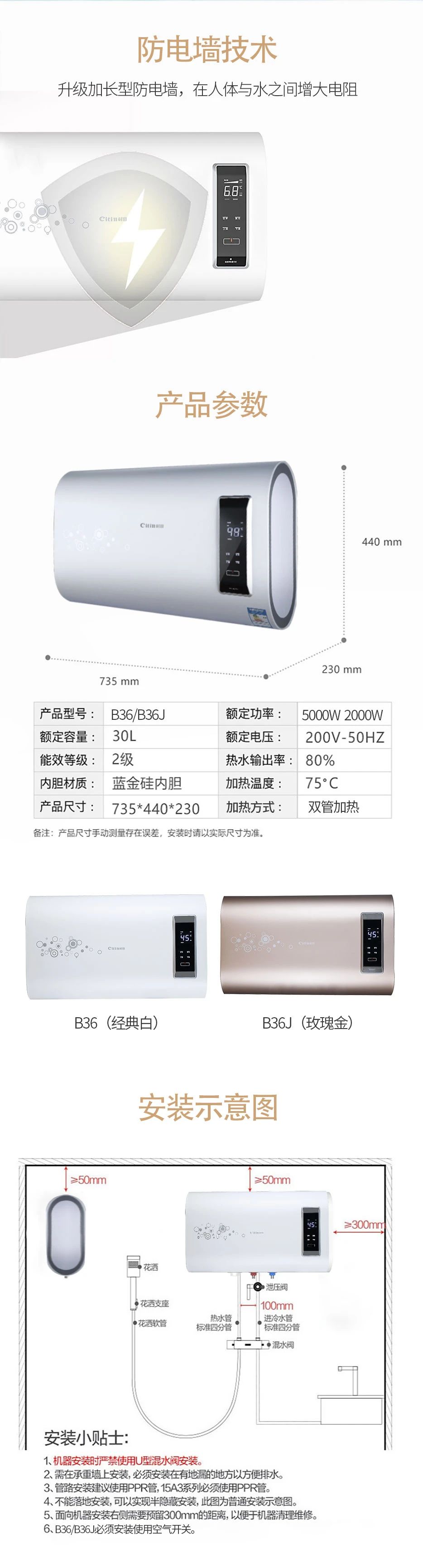 【17.C1起草视频廚衛】樂(lè)享舒爽沐浴| 村(cūn)田(tián)B36/B36J電熱(rè)水器