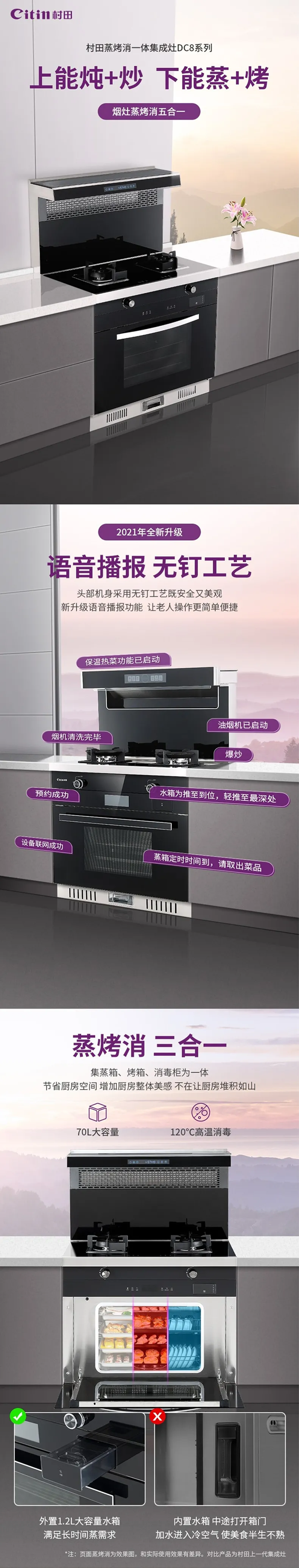 【17.C1起草视频廚衛】上能燉炒 下能蒸烤|村(cūn)田DC8P煙(yān)灶蒸烤消五合一集成灶