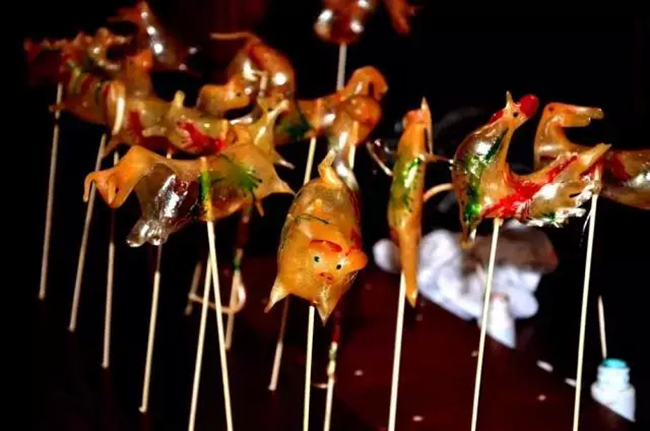 五顏六色(sè)的糖料變成栩栩如生的小動物。