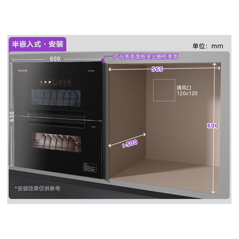 控製(zhì)方式:觸摸產品尺寸:595*630*450mm開孔尺(chǐ)寸(cùn):565*600*480mm消毒方式:臭氧+烘幹(gàn)+高溫